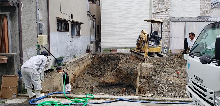 八尾市高美町にて、本日からいよいよ本格工事です。